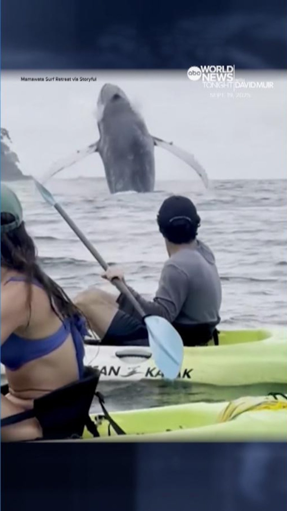 Los kayakistas de Costa Rica tenían la mejor vista de un espectáculo inesperado en medio del océano cuando huyeron una ballena jorobada y su pantorrilla.