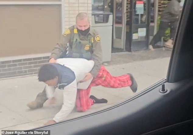 Imágenes de video tomadas cerca de un Walgreens de Chicago mostraron al oficial de inmigración arrojando al joven al suelo el 14 de octubre.