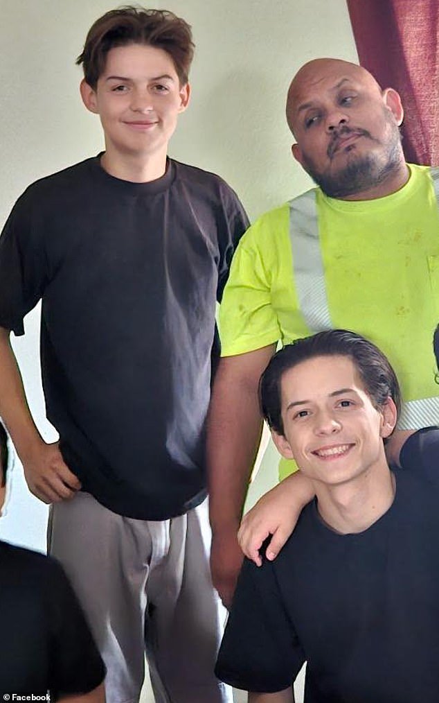 Javier ‘Milo’ Figueroa, de 17 años, (de pie, izquierda) fue asesinado el sábado por la noche después de que la policía dijo que su hermano mayor Juan (abajo a la derecha), 19 deliberadamente lo golpeó con un automóvil durante una confrontación de la ira en Yuma, Arizona,