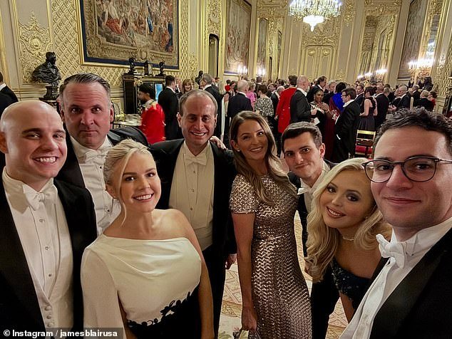 Más tarde en la noche en la cena estatal, el subdirector de gabinete de la Casa Blanca, James Blair, publicó una selfie en Instagram con un grupo de personas de alto poder en el círculo interno de Trump. Esto incluyó, entre otras cosas, el codeputado de Blair, Dan Scavino, Leavitt, Martin, el secretario del personal, Will Scharf y la hija de la presidenta Tiffany Trump.