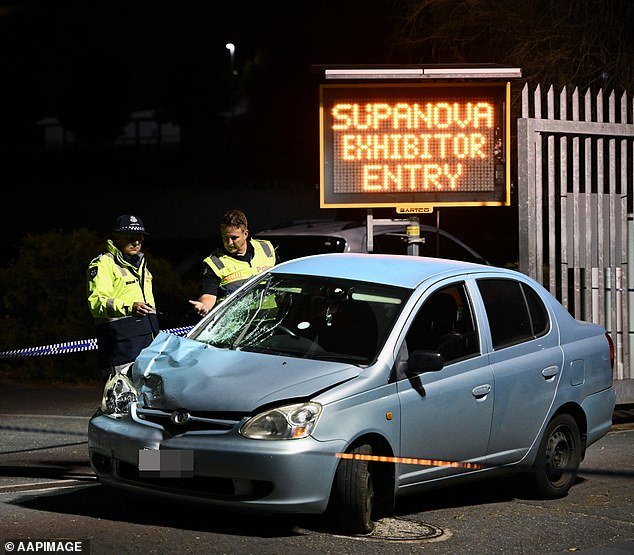 El Toyota gris supuestamente condujo hasta una acera donde tres hombres estaban parados afuera del evento Supanova Comic Con and Gaming en el Melbourne Showgrounds el sábado.