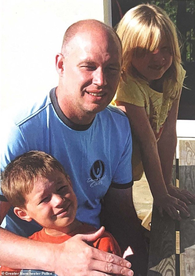 El director de la Stretford Grammar School, Michael Mullins, de 56 años, en la foto con su hijo y su hija.