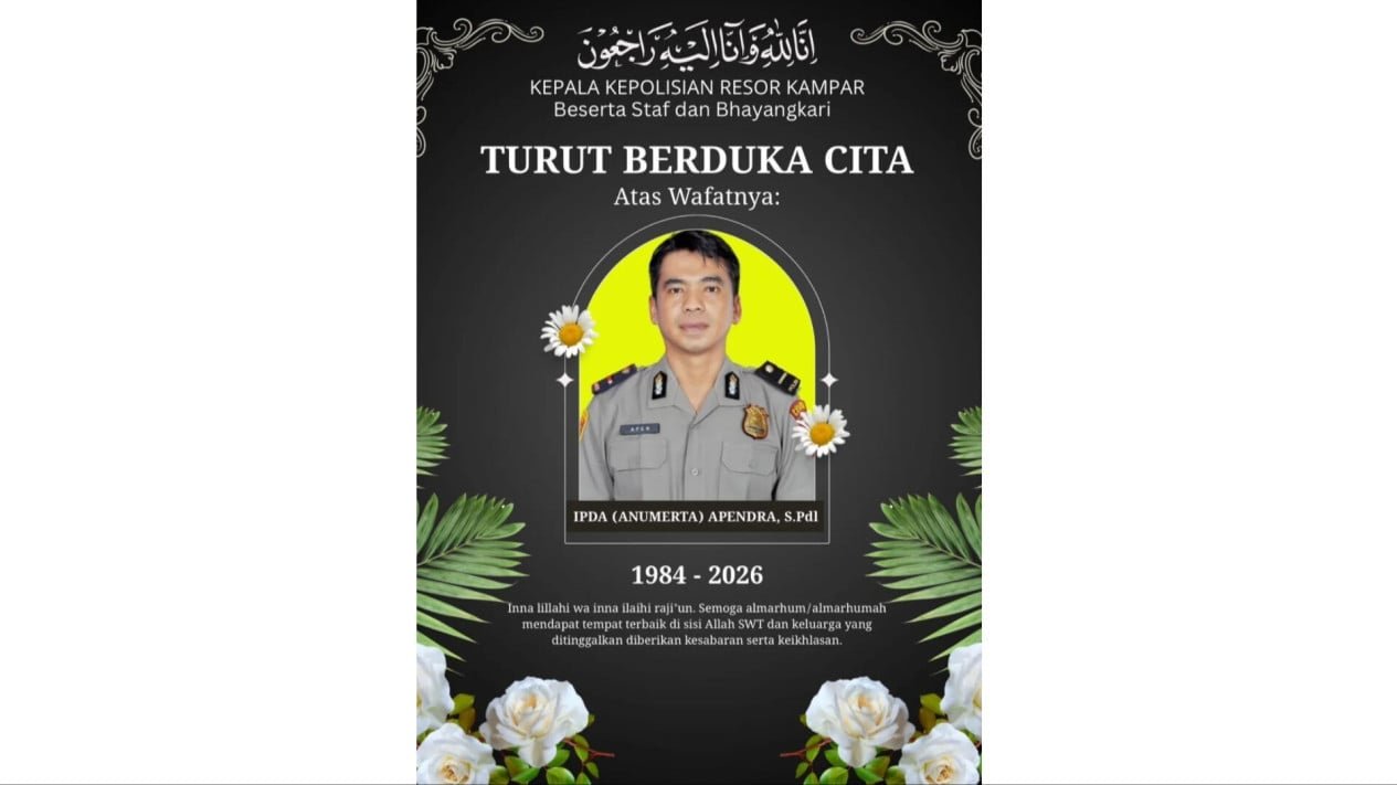 Aiptu Apendra, jefe de la Unidad de Investigación Criminal de la Policía de Kampar, fue declarado muerto el sábado 21 de marzo alrededor de las 02:39 WIB, debido a fatiga y dificultad para respirar mientras estaba de servicio.