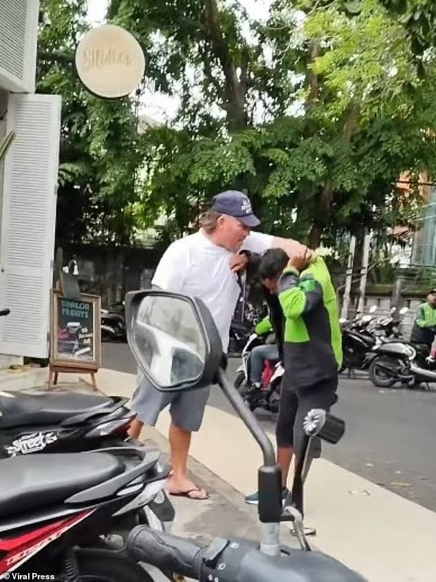 Las imágenes muestran al hombre y al conductor Gojek durante un acalorado intercambio en Bali a principios de este mes.