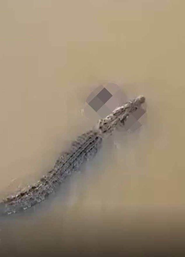 Las imágenes horribles muestran el reptil que tensa al adolescente sin vida mientras se desliza aguas arriba cerca del borde del río.