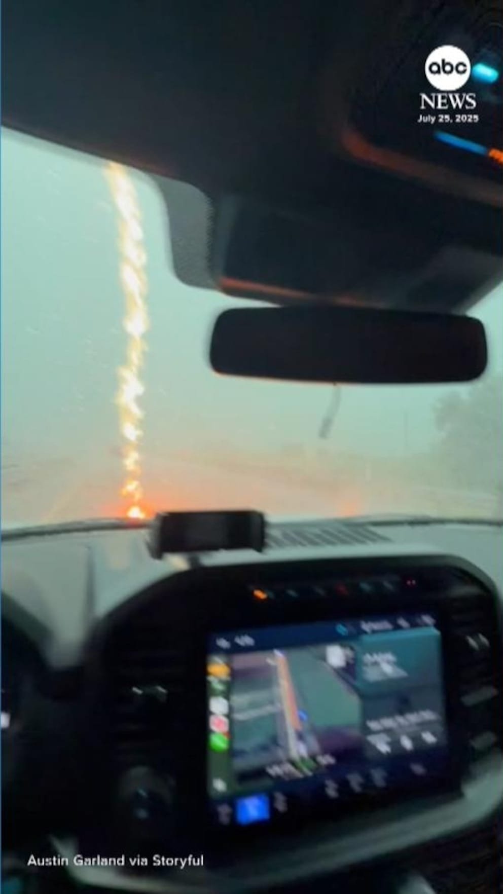 Un conductor capturó el momento dramático mientras conducía a través del clima tormentoso en una carretera de Texas que golpeó el capó de su automóvil.