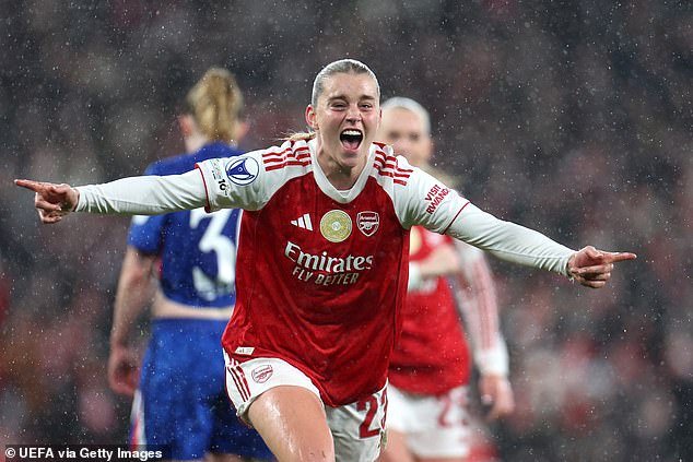 La superdelantera sueca del Arsenal, Stina Blackstenius, dio a los Gunners la ventaja aquí después de unos primeros minutos difíciles en los que el Chelsea estrelló dos veces en el palo.