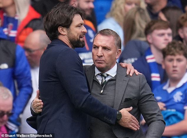 Russell Martin y Brendan Rodgers se besan después del empate 0-0 en Ibrox el mes pasado