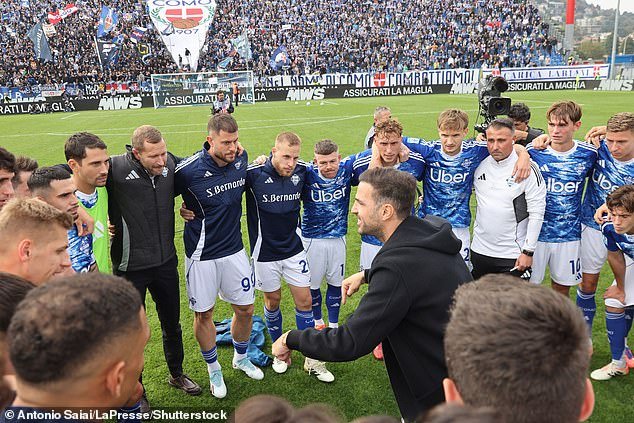 Cesc Fàbregas fue captado dando un inspirador discurso a su equipo de Como tras la victoria