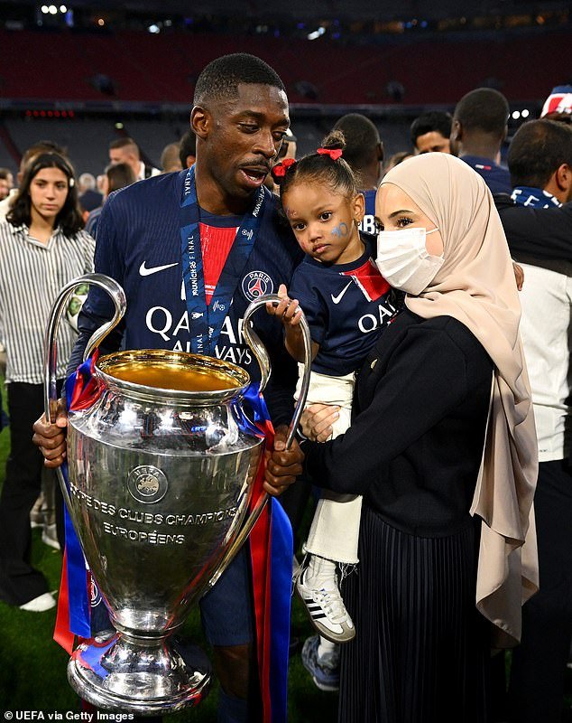 Ousmane Dembele está representado con su esposa Rima Edbouche y su niña después de que el francés ayudó a PSG en la Liga de Campeones la temporada pasada.