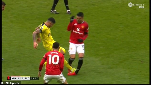 El capitán del Tottenham, Cristian Romero, recibió una tarjeta roja directa por segunda vez esta temporada luego de un desafío imprudente a Casemiro.
