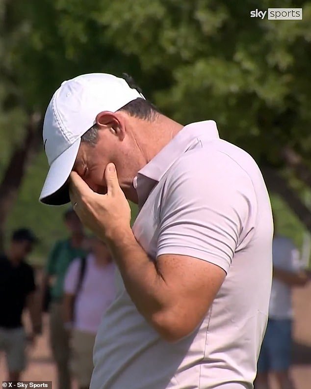 McIlroy se llevó las manos a la cabeza, se agachó y pareció angustiado cuando el comentarista de Sky Sports, Dominik Holyer, dijo: “Bueno, bueno”.