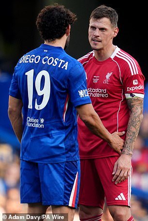 Pero Costa se vio envuelto en un espectacular enfrentamiento con su viejo enemigo Martin Skrtel, lo que le valió una tarjeta amarilla en escenas destacables dado que el partido estaba clasificado como un “amistoso” con fines benéficos.