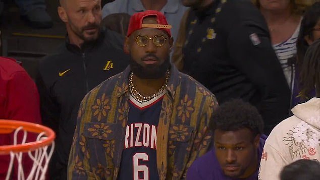 James fue fotografiado en el campo de Los Ángeles mientras animaba a sus compañeros de equipo durante el partido, y los fanáticos notaron rápidamente el atuendo único que vestía.