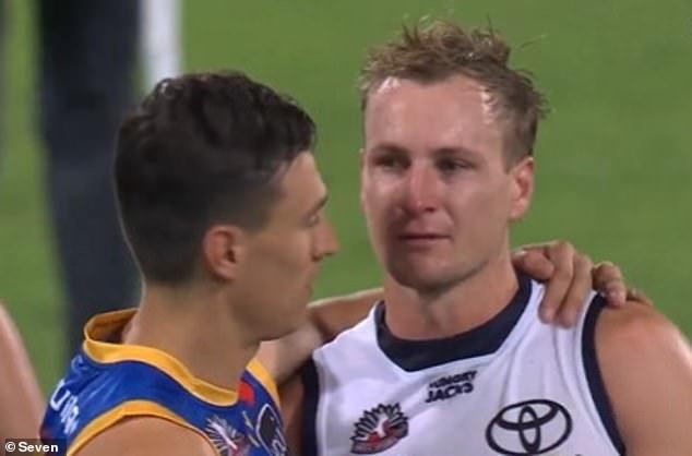 El capitán del Adelaide, Jordan Dawson, se sintió abrumado por la emoción en el Gabba y rompió a llorar mientras los jugadores de ambos lados lo rodeaban tras su valiente regreso al fútbol.