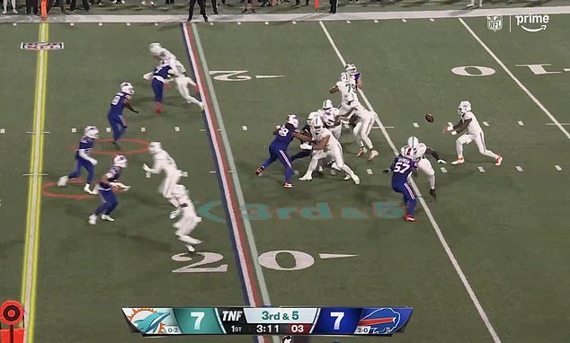 Los Dolphins Quarterrier de los Miami, Tua Tagovailoa, tuvo una aterradora competencia de fútbol el jueves por la noche al comienzo de una competencia de fútbol por la noche del jueves contra los Buffalo Bills que se burlaron de él.