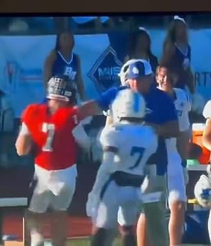 En represalia, el mariscal de campo le lanzó el balón al entrenador, lo que provocó una pelea al margen.