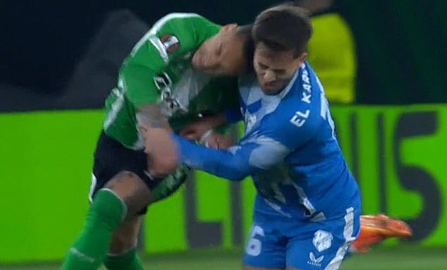 El Karouani, a quien irónicamente se le vinculó con un fichaje por el Real Betis esta semana, se cayó sujetándose la cabeza.
