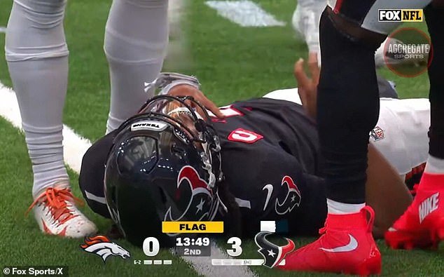CJ Stroud fue llevado al vestuario para ser revisado por una conmoción cerebral después de que el mariscal de campo de los Texans estuviera en el lado equivocado de una desagradable colisión contra los Broncos.