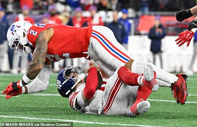 Primero fue el turno del apoyador de los Patriots, Harold Landry, de empatar a Dart, quien intentó sin éxito escapar de la presión de New England en la primera serie de New York. Con el bolsillo colapsando a su alrededor, Dart avanzó con un ojo hacia la línea lateral derecha, sólo para ser aplastado por un disparo casi de casco a casco de Landry.