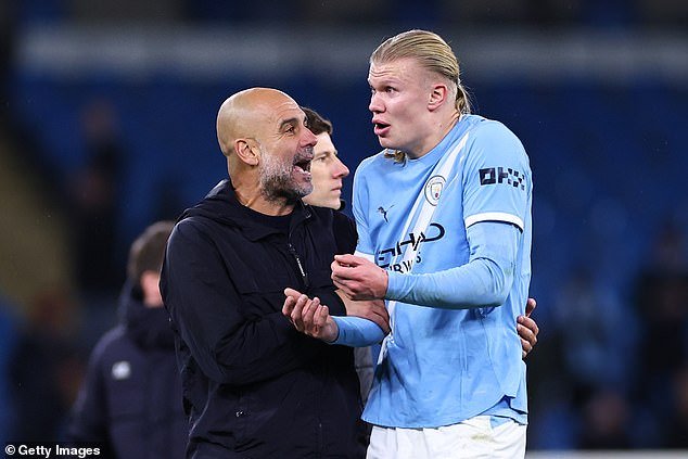 Pep Guardiola (izquierda) le dijo a Erling Haaland que dejara de presionarse después de poner fin a su carrera estéril frente a la portería.