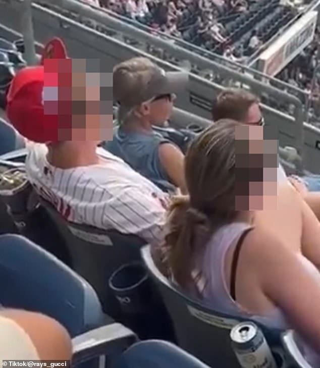 En el metraje, que se inundó en las redes sociales, se mostró uno, con jersey y gorra de Philadelphia pllis, sentada junto a una mujer en la parte superior del stand.