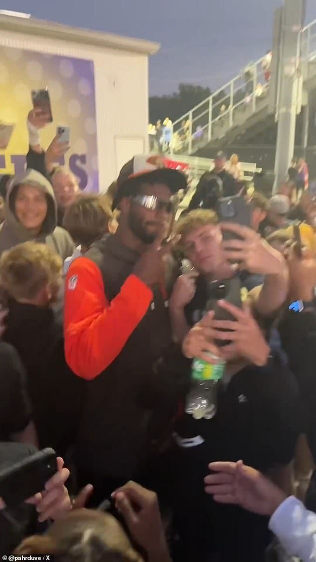 Shediur Sanders sacudido por fanáticos buscados en selfie en un juego de fútbol de la escuela secundaria