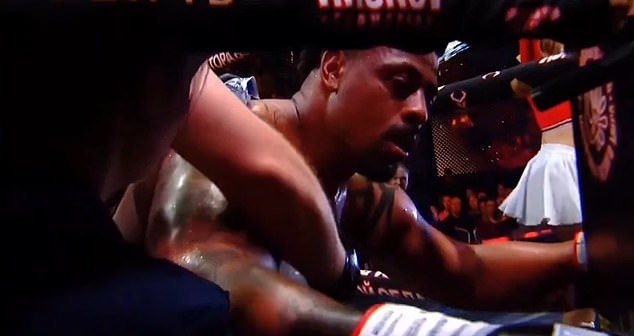 Hardy pareció recibir varios golpes antes de colapsar en su esquina al final del tercer asalto mientras luchaba contra el asma, lo que significa que la pelea se detuvo.