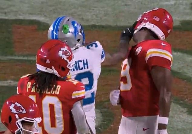 Fue provocado por el defensor de los Lions Brian Branch, quien reemplazó a Juju Smith-Schuster al final del juego después de ignorar a Patrick Mahomes cuando extendió la mano para estrecharle la mano. Es casi seguro que Branch enfrentará medidas disciplinarias por parte de la NFL por su participación.