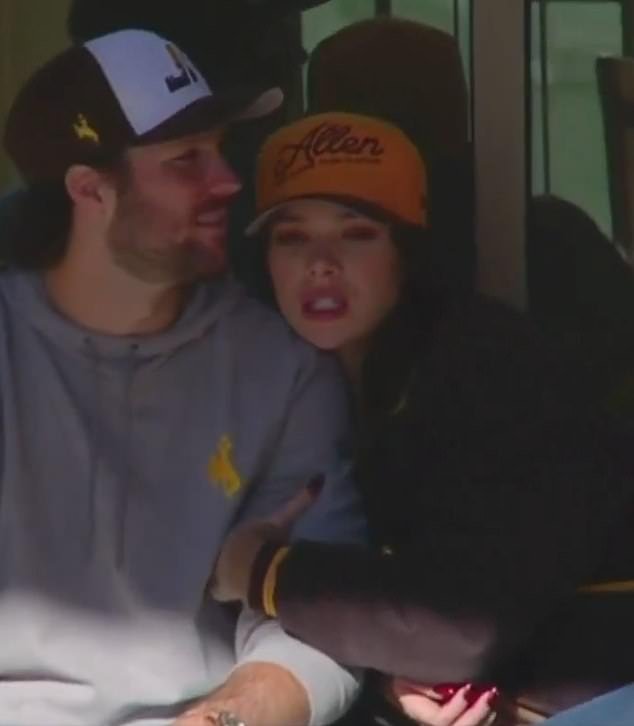 Josh Allen y Hailee Steinfeld disfrutaron de un raro momento de PDA durante la ceremonia de retiro de la camiseta universitaria del mariscal de campo en Wyoming el sábado.