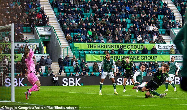 Daizen Maeda anota desde corta distancia tras un error del portero del Hibs Raphael Sallinger