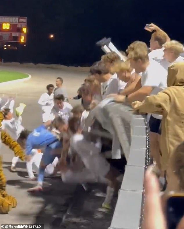 El juego tuvo lugar en la escuela secundaria Waggener y las fotos en las redes sociales mostraban la barandilla completamente rota en su base.