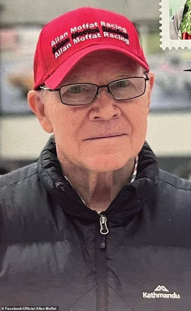 Moffat, de 85 años, mostró signos de la enfermedad por primera vez en 2016, pero inicialmente se los ocultó a su familia (en la foto, después del triunfo en Mount Panorama).