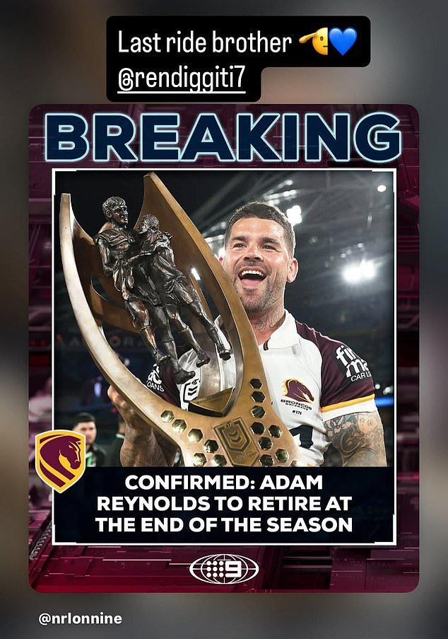 Haas respondió a un informe de Channel Nine que confirmaba que su compañero de equipo Adam Reynolds se retiraría al final de la temporada, publicando: “último hermano de carreras”.