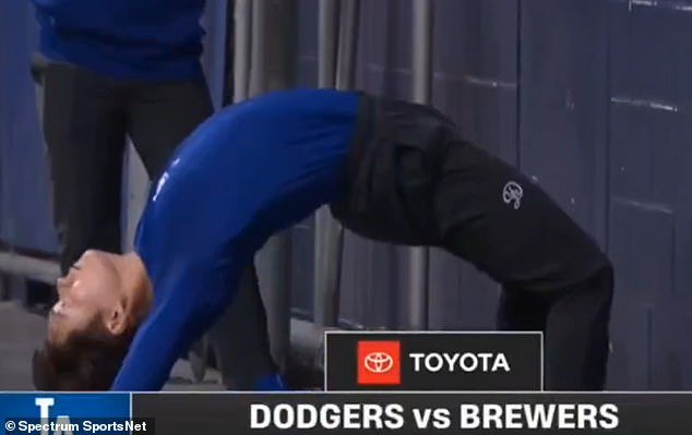 Y un día después de su siguiente aparición con los Dodgers, se vio al lanzador japonés haciendo un estiramiento de puente, como se capturó en la transmisión de Spectrum SportsNet.