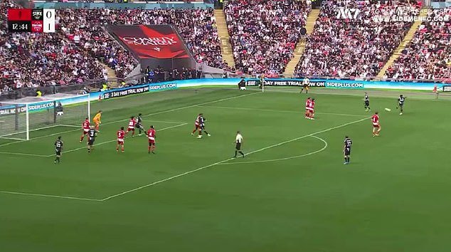 La estrella del equipo Tobi Brown anotó un suntuoso tiro libre en un destello de calidad durante su partido benéfico en Wembley.
