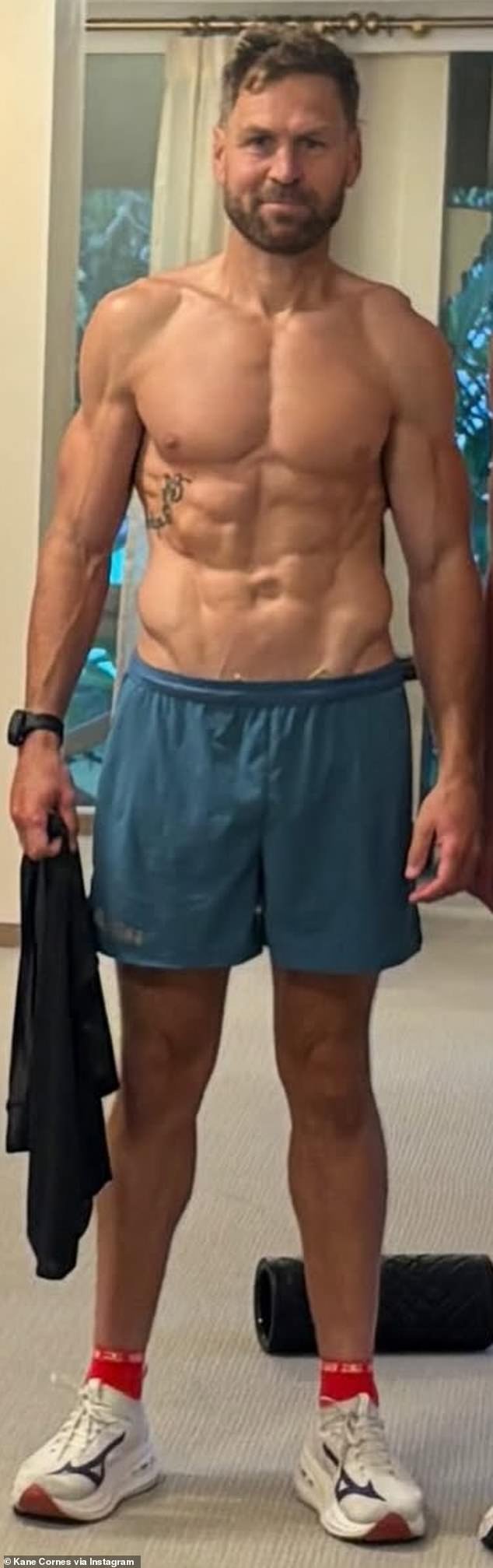 Kane Cornes (en la foto) mostró su físico absolutamente destrozado en las redes sociales, lo que llevó a su copresentador David King a bromear diciendo que la ex estrella de Port Adelaide necesitaba hacerse una prueba de drogas.