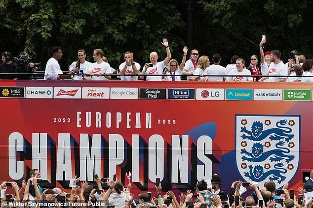 Escuadrón, incluido el anotador de penalti Cloe Kelly, barrieron a los fanáticos mientras cabalgaron hacia el Palacio de Buckingham e hicieron la película de desfile por sí mismos