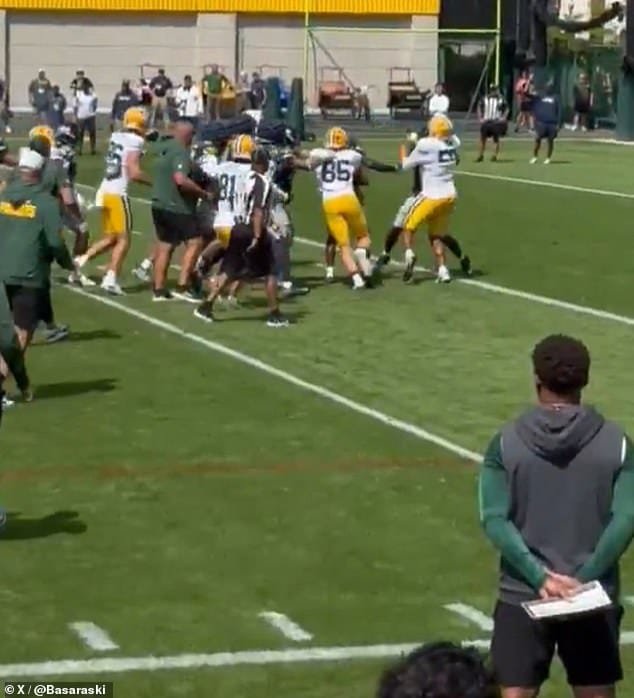 Una práctica entre Seattle Sihaqs y Green Bay Packers explotó en una pelea de 50 tercios el jueves cuando los temperatura fluyeron entre los rivales de la NFL.