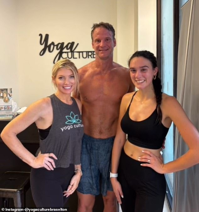 Y después de sudar durante la clase, Kiffin posó sin camisa junto a dos mujeres.