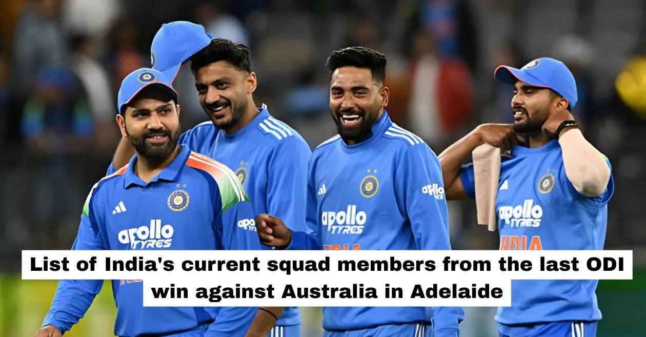 Miembros actuales del equipo ODI de India en la última victoria contra Australia en Adelaida