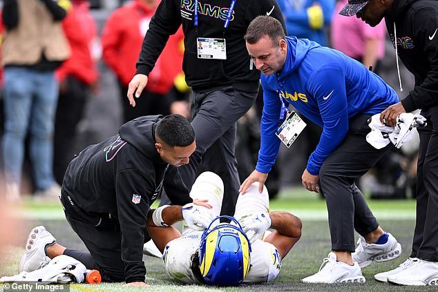 Nacua no se veía bien cuando aterrizó y lentamente se levantó, cojeó unos pasos y volvió a bajar antes de ser ayudado a llegar al vestuario durante el segundo cuarto.