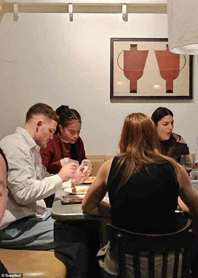 Ilustrado: Nathan Clearry y Mary Pholer disfrutaron de una comida italiana en Sydney esta semana en Sydney (derecha, cara a cara) y el padre Ivan (sin disparos)