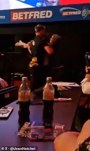 El incidente ocurrió cuando Van Lewen estaba listo para construir su entrada con Loren Winstley, un juego que ganó 3-1. Los dos manifestantes se pusieron de pie y saltaron a ellos ahora y saltaron de sus instalaciones.