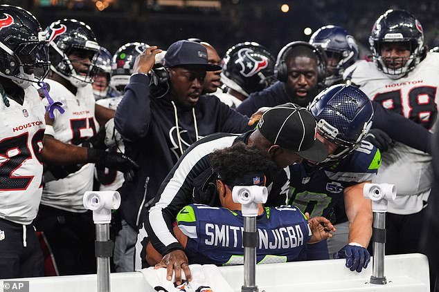 Una caótica pelea se desató el lunes por la noche durante el partido de la NFL entre los Seahawks y los Texans pero, afortunadamente para la estrella de Seattle, Jaxon Smith-Njigba, un árbitro lo arrinconó y lo protegió de sus rivales.