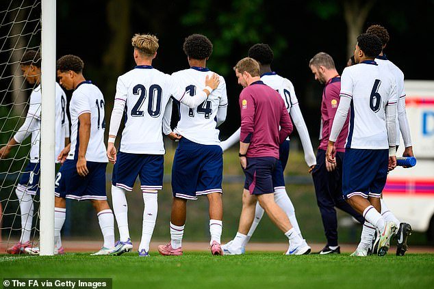 Fotos del partido en Duisburg, Alemania, demostraron que salieron del campo mientras consolaban a sus jugadores en Brahmal, especialmente el jugador del Chelsea de 16 años Mathelsea Aboi estaba especialmente molesto por ver lo que sucedió.