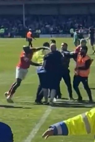 El mediocampista de la ciudad de York, Hiram Boateng, fue visto golpeando a un fanático de Rochdale en medio de una invasión del campo en aparente represalia después de ser empujado al suelo.