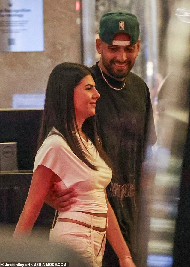 Nick Kyrgios no pudo ocultar su afecto por su nuevo amor cuando salieron el sábado por la noche y la abrazaron mientras disfrutaban de una cita en un restaurante de Melbourne.