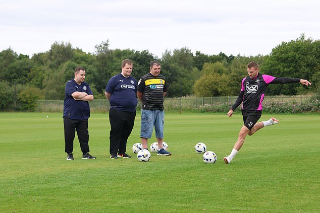 El delantero atlético de Wigan, Paul Mullin, intercambió penalizaciones para entrenarlos mientras pone a prueba un equipo de futbolistas discapacitados, lo que contribuye a celebrar un subsidio de £ 30,000 del Fondo de Fundaciones del Edificio Sky Bet EFL.