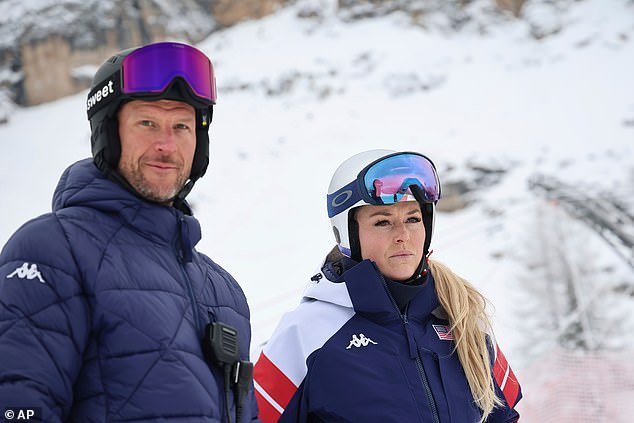 Según los informes, el entrenador de Vonn, Aksel Lund Svindal (izquierda), observó que la mujer de 41 años había compensado en exceso su rodilla ilesa en los días previos a su horrible accidente del domingo.